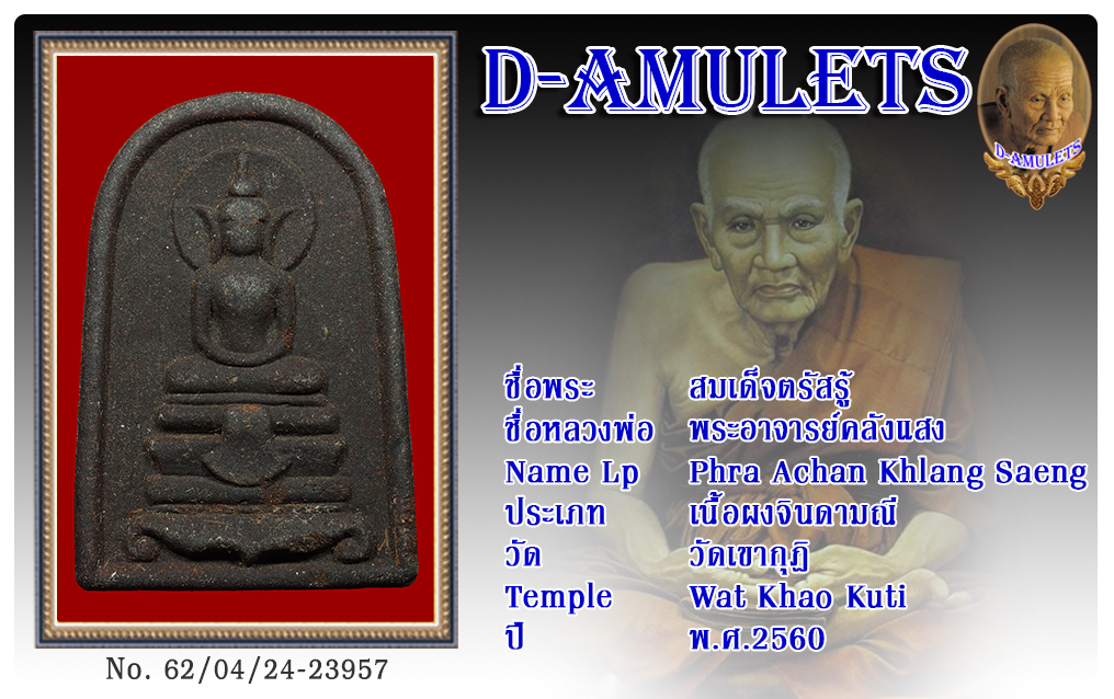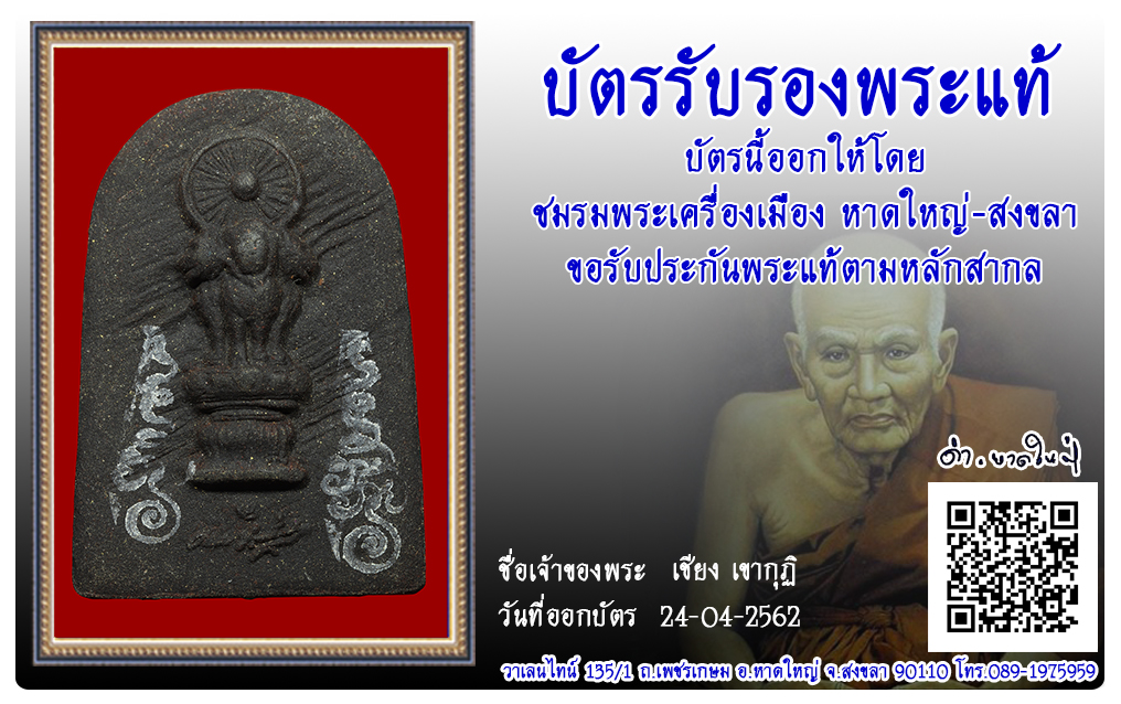 สมเด็จตรัสรู้ พระอาจารย์คลังแสง วัดเขากุฏิ พ.ศ.2560 2562 24 เม.ย. 2019 455 share tweet share ชื่อพระ : สมเด็จตรัสรู้ ชื่อหลวงพ่อ : พระอาจารย์คลังแสง ประเภท : เนื้อผงจินดามณี วัด-ปี : วัดเขากุฏิ พ.ศ.2560 รหัส : No.62/04/24/23957 เจ้าของพระ : เชียง เขากุฏิ