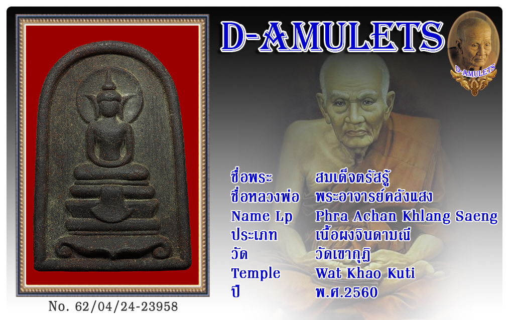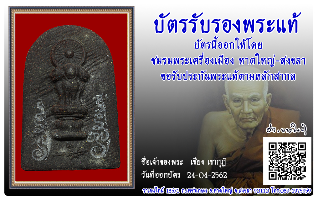 สมเด็จตรัสรู้ พระอาจารย์คลังแสง วัดเขากุฏิ พ.ศ.2560 2562 24 เม.ย. 2019 946 share tweet share ชื่อพระ : สมเด็จตรัสรู้ ชื่อหลวงพ่อ : พระอาจารย์คลังแสง ประเภท : เนื้อผงจินดามณี วัด-ปี : วัดเขากุฏิ พ.ศ.2560 รหัส : No.62/04/24/23958 เจ้าของพระ : เชียง เขากุฏิ
