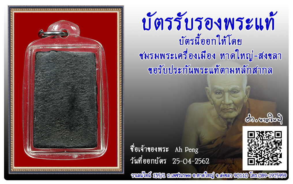 พระสมเด็จ อาจารย์ชุม ไชยคีรี วัดพระบรมธาตุ พ.ศ.2497 2562 25 เม.ย. 2019 576 share tweet share ชื่อพระ : พระสมเด็จ ชื่อหลวงพ่อ : อาจารย์ชุม ไชยคีรี ประเภท : เนื้อผงผสมว่าน วัด-ปี : วัดพระบรมธาตุ พ.ศ.2497 รหัส : No.62/04/25/23967 เจ้าของพระ : Ah Peng