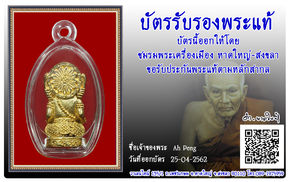 รูปเหมือนพระพิฆเนศวร์ อาจารย์ชุม ไชยคีรี วัดทุ่งเสรี พ.ศ.2519 2562 25 เม.ย. 2019 437 share tweet share ชื่อพระ : รูปเหมือนพระพิฆเนศวร์ ชื่อหลวงพ่อ : อาจารย์ชุม ไชยคีรี ประเภท : เนื้อทองเหลืองกะไหล่ทอง วัด-ปี : วัดทุ่งเสรี พ.ศ.2519 รหัส : No.62/04/25/23970 เจ้าของพระ : Ah Peng