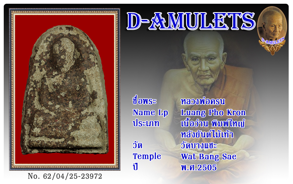 หลวงพ่อครน วัดบางแซะ พ.ศ.2505 2562 25 เม.ย. 2019 238 share tweet share ชื่อพระ : หลวงพ่อครน ประเภท : เนื้อว่าน พิมพ์ใหญ่ หลังยันต์ไม้เท้า วัด-ปี : วัดบางแซะ พ.ศ.2505 รหัส : No.62/04/25/23972 เจ้าของพระ : KBG Amulet