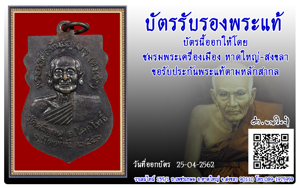 เหรียญหลวงปู่ทวด วัดหน้าเกตุ พ.ศ.2546 2562 25 เม.ย. 2019 570 share tweet share ชื่อพระ : เหรียญหลวงปู่ทวด ประเภท : หลังหลวงพ่อตาเจ้า เนื้อทองแดง วัด-ปี : วัดหน้าเกตุ พ.ศ.2546 รหัส : No.62/04/25/23999