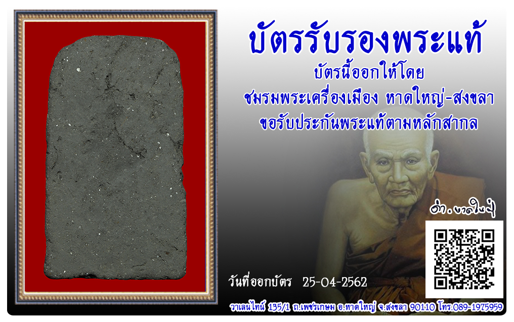 พระผงพรายสมุทร หลวงพ่อเจิม วัดหอยราก พ.ศ.2499 2562 25 เม.ย. 2019 244 share tweet share ชื่อพระ : พระผงพรายสมุทร ชื่อหลวงพ่อ : หลวงพ่อเจิม ประเภท : พิมพ์ปรกโพธิ์เล็ก วัด-ปี : วัดหอยราก พ.ศ.2499 รหัส : No.62/04/25/24003
