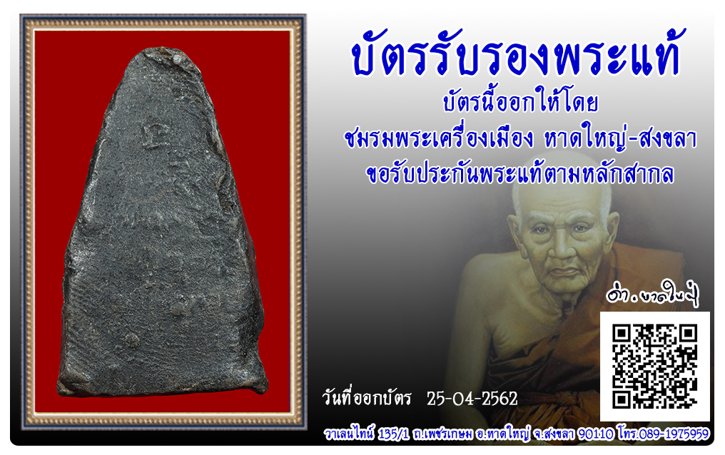 หลวงปู่ทวด พระครูใบฎีกาขาว วัดช้างให้ พ.ศ.2513 2562 25 เม.ย. 2019 226 share tweet share ชื่อพระ : หลวงปู่ทวด ชื่อหลวงพ่อ : พระครูใบฎีกาขาว ประเภท : เนื้อดินผสมว่าน วัด-ปี : วัดช้างให้ พ.ศ.2513 รหัส : No.62/04/25/24006