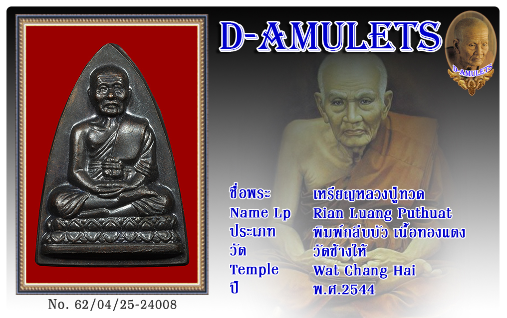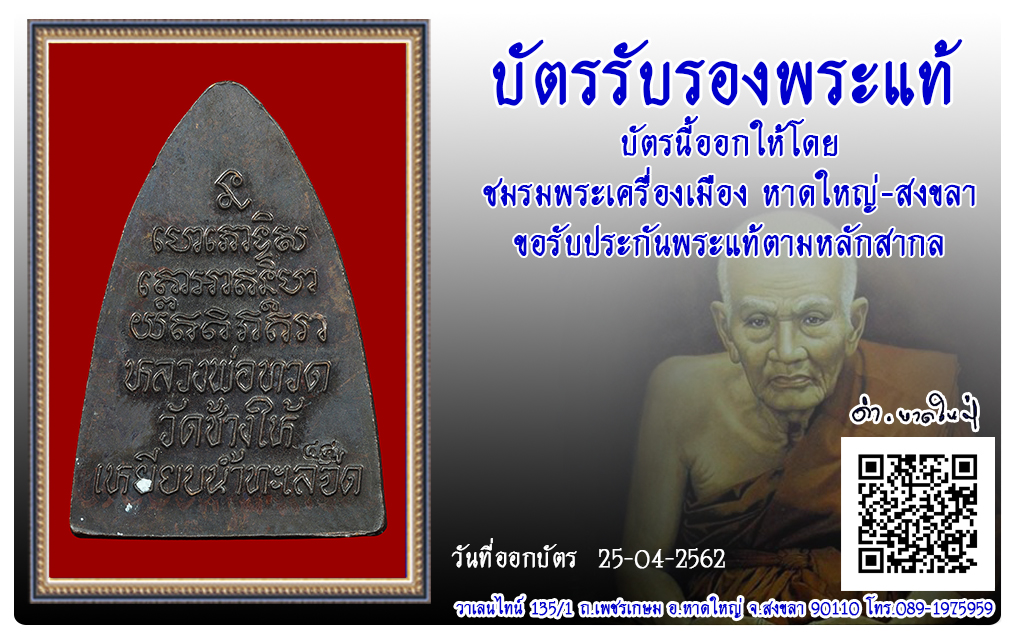 เหรียญหลวงปู่ทวด วัดช้างให้ พ.ศ.2544 2562 25 เม.ย. 2019 421 share tweet share ชื่อพระ : เหรียญหลวงปู่ทวด ประเภท : พิมพ์กลีบบัว เนื้อทองแดง วัด-ปี : วัดช้างให้ พ.ศ.2544 รหัส : No.62/04/25/24008