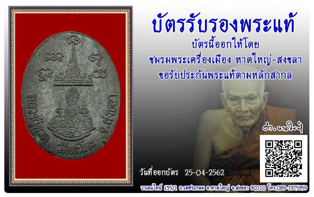 หลวงปู่ทวด วัดพะโคะ พ.ศ.2539 2562 25 เม.ย. 2019 400 share tweet share ชื่อพระ : หลวงปู่ทวด ประเภท : เนื้อว่าน พิมพ์กรรมการเล็ก วัด-ปี : วัดพะโคะ พ.ศ.2539 รหัส : No.62/04/25/24013