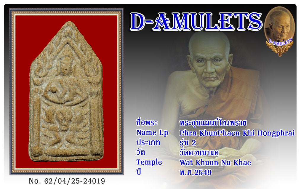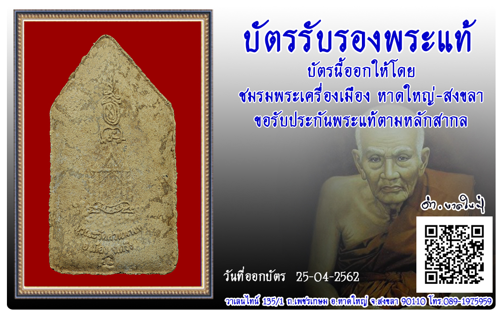 พระขุนแผนขี่โหงพราย วัดควนนาแค พ.ศ.2549 2562 25 เม.ย. 2019 267 share tweet share ชื่อพระ : พระขุนแผนขี่โหงพราย ประเภท : รุ่น 2 วัด-ปี : วัดควนนาแค พ.ศ.2549 รหัส : No.62/04/25/24019