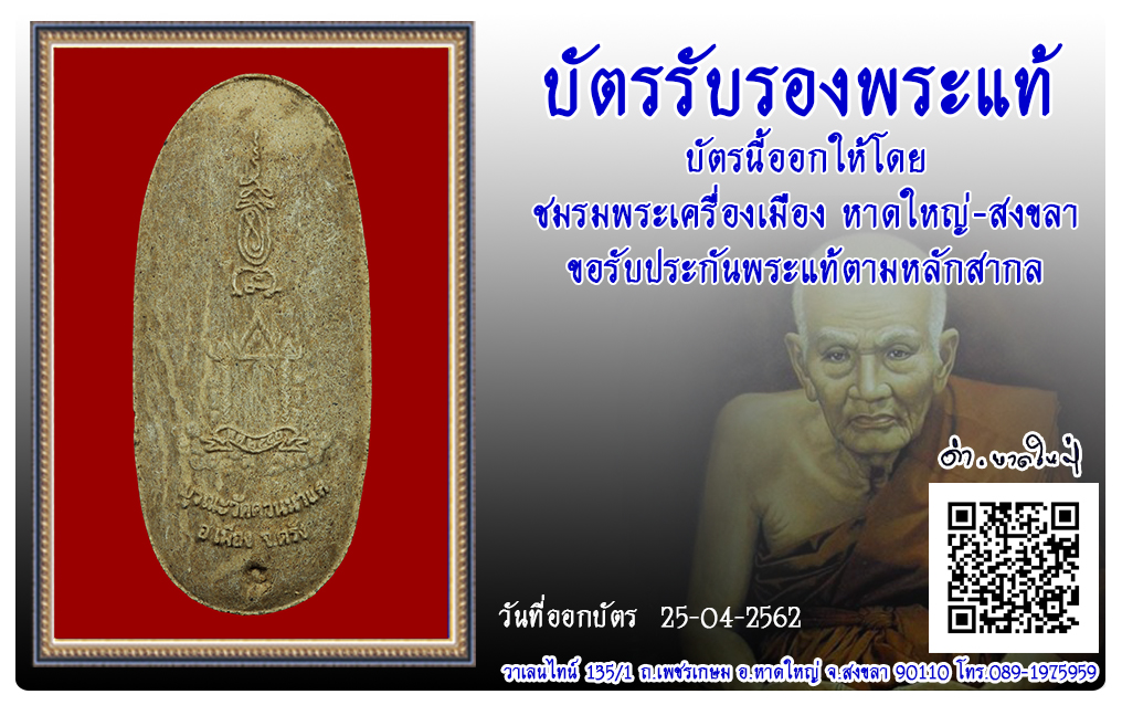 พระขุนแผนจูงกุมาร วัดควนนาแค พ.ศ.2539 2562 25 เม.ย. 2019 255 share tweet share ชื่อพระ : พระขุนแผนจูงกุมาร ประเภท : รุ่น 2 วัด-ปี : วัดควนนาแค พ.ศ.2539 รหัส : No.62/04/25/24020