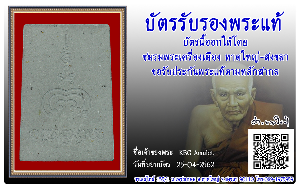 พระนาคปรก หลวงพ่อแพ วัดพิกุลทอง พ.ศ.2538 2562 25 เม.ย. 2019 279 share tweet share ชื่อพระ : พระนาคปรก ชื่อหลวงพ่อ : หลวงพ่อแพ ประเภท : เนื้อผง วัด-ปี : วัดพิกุลทอง พ.ศ.2538 รหัส : No.62/04/25/24021 เจ้าของพระ : KBG Amulet
