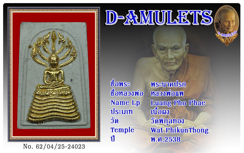 พระนาคปรก หลวงพ่อแพ วัดพิกุลทอง พ.ศ.2538 2562 25 เม.ย. 2019 261 share tweet share ชื่อพระ : พระนาคปรก ชื่อหลวงพ่อ : หลวงพ่อแพ ประเภท : เนื้อผง วัด-ปี : วัดพิกุลทอง พ.ศ.2538 รหัส : No.62/04/25/24023 เจ้าของพระ : KBG Amulet
