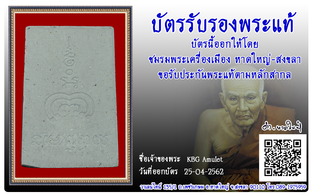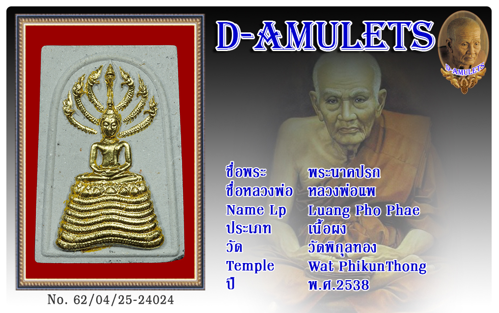 พระนาคปรก หลวงพ่อแพ วัดพิกุลทอง พ.ศ.2538 2562 25 เม.ย. 2019 258 share tweet share ชื่อพระ : พระนาคปรก ชื่อหลวงพ่อ : หลวงพ่อแพ ประเภท : เนื้อผง วัด-ปี : วัดพิกุลทอง พ.ศ.2538 รหัส : No.62/04/25/24024 เจ้าของพระ : KBG Amulet