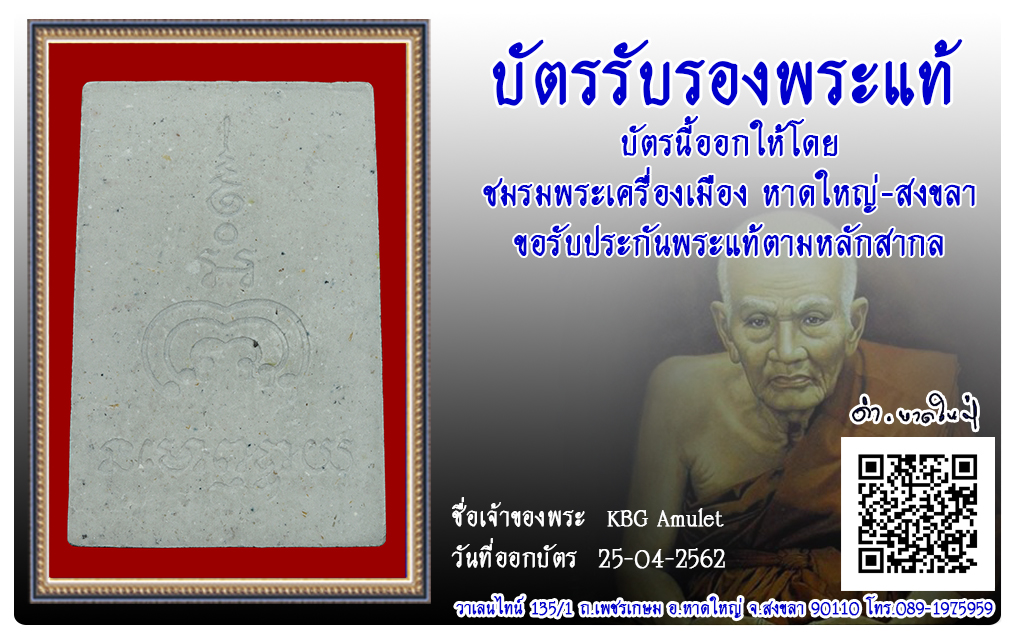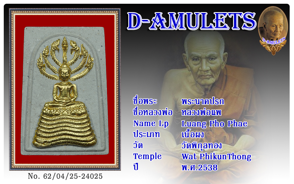 พระนาคปรก หลวงพ่อแพ วัดพิกุลทอง พ.ศ.2538 2562 25 เม.ย. 2019 240 share tweet share ชื่อพระ : พระนาคปรก ชื่อหลวงพ่อ : หลวงพ่อแพ ประเภท : เนื้อผง วัด-ปี : วัดพิกุลทอง พ.ศ.2538 รหัส : No.62/04/25/24025 เจ้าของพระ : KBG Amulet