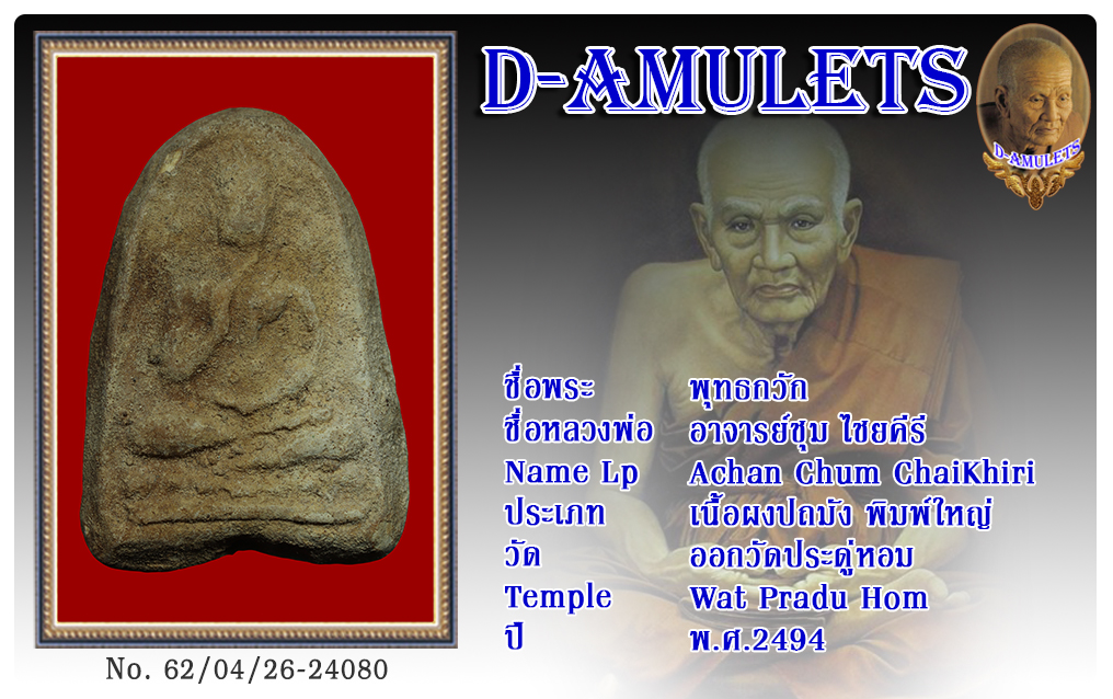 พุทธกวัก อาจารย์ชุม ไชยคีรี ออกวัดประดู่หอม พ.ศ.2494 2562 26 เม.ย. 2019 238 share tweet share ชื่อพระ : พุทธกวัก ชื่อหลวงพ่อ : อาจารย์ชุม ไชยคีรี ประเภท : เนื้อผงปถมัง พิมพ์ใหญ่ วัด-ปี : ออกวัดประดู่หอม พ.ศ.2494 รหัส : No.62/04/26/24080 เจ้าของพระ : KBG Amulet