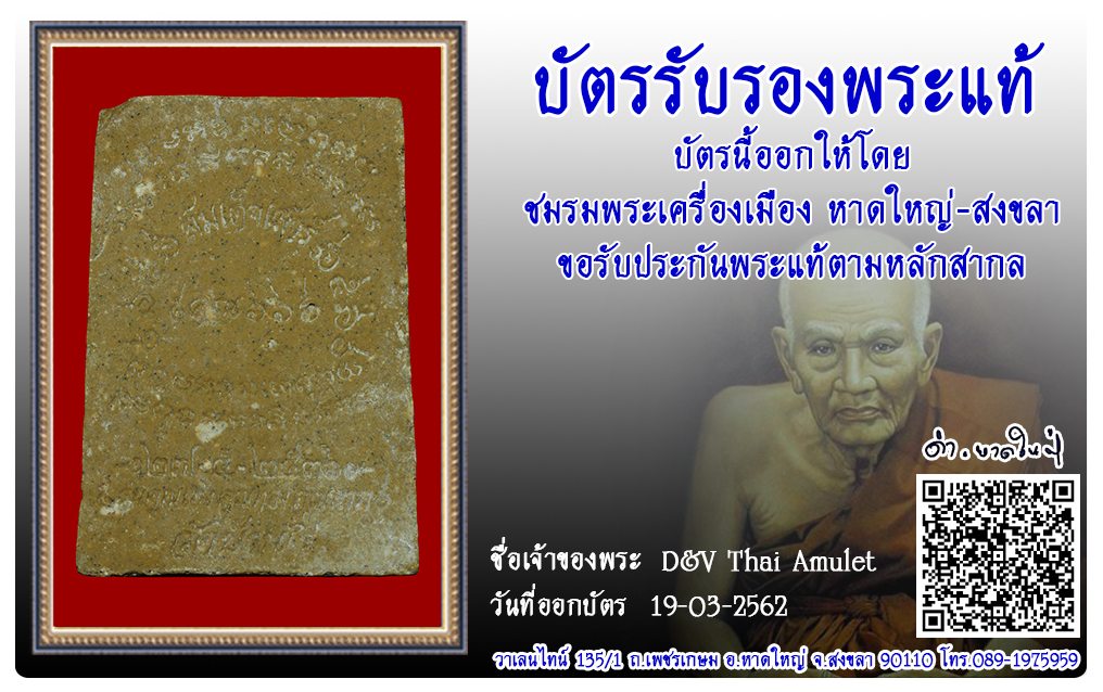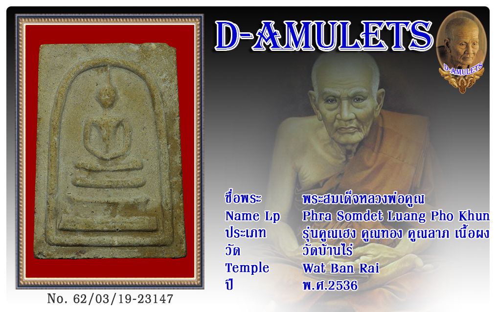 พระสมเด็จหลวงพ่อคูณ วัดบ้านไร่ พ.ศ.2516 2562 19 มี.ค. 2019 311 share tweet share ชื่อพระ : พระสมเด็จหลวงพ่อคูณ ประเภท : รุ่นคูณเฮง คูณทอง คูณลาภ เนื้อผง วัด-ปี : วัดบ้านไร่ พ.ศ.2516 รหัส : No.62/03/19/23147 ชื่อเจ้าของพระ D&V Thai Amulet