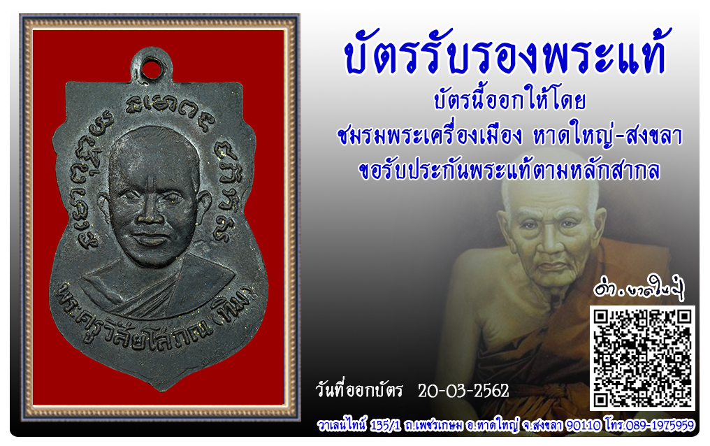 เหรียญหลวงปู่ทวด วัดช้างให้ พ.ศ.2504 2562 20 มี.ค. 2019 254 share tweet share ชื่อพระ : เหรียญหลวงปู่ทวด ประเภท : รุ่นสาม เนื้อทองแดง บล็อคประสพการณ์ วัด-ปี : วัดช้างให้ พ.ศ.2504 รหัส : No.62/03/20/23153