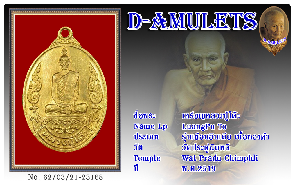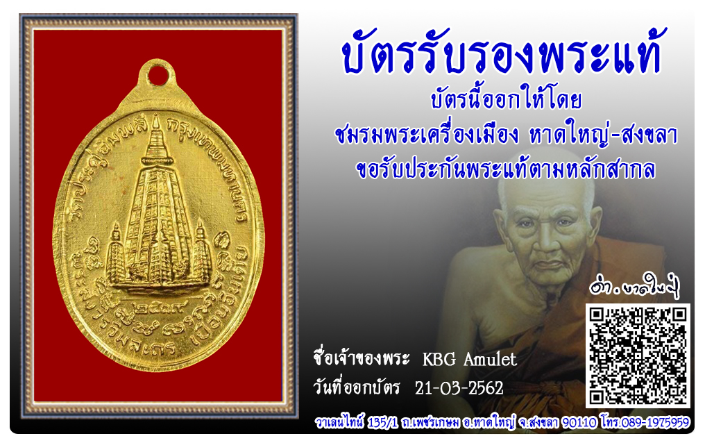 เหรียญหลวงปู่โต๊ะ วัดประดู่ฉิมพลี พ.ศ.2519 2562 21 มี.ค. 2019 600 share tweet share ชื่อพระ : เหรียญหลวงปู่โต๊ะ ประเภท : รุ่นเยือนอินเดีย เนื้อทองคำ วัด-ปี : วัดประดู่ฉิมพลี พ.ศ.2519 รหัส : No.62/03/21/23168 ชื่อเจ้าของพระ KBG Amulet