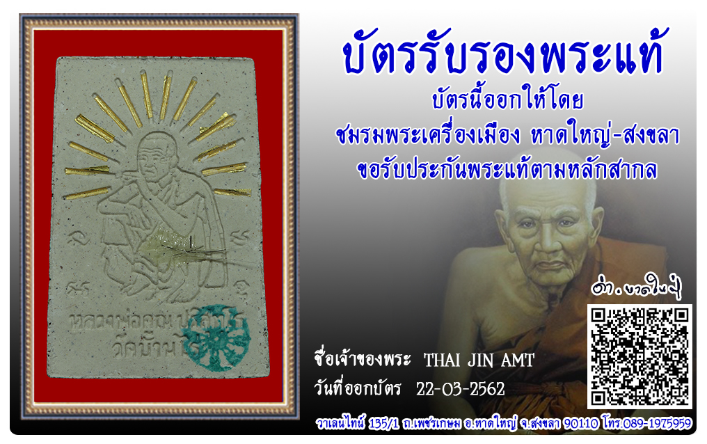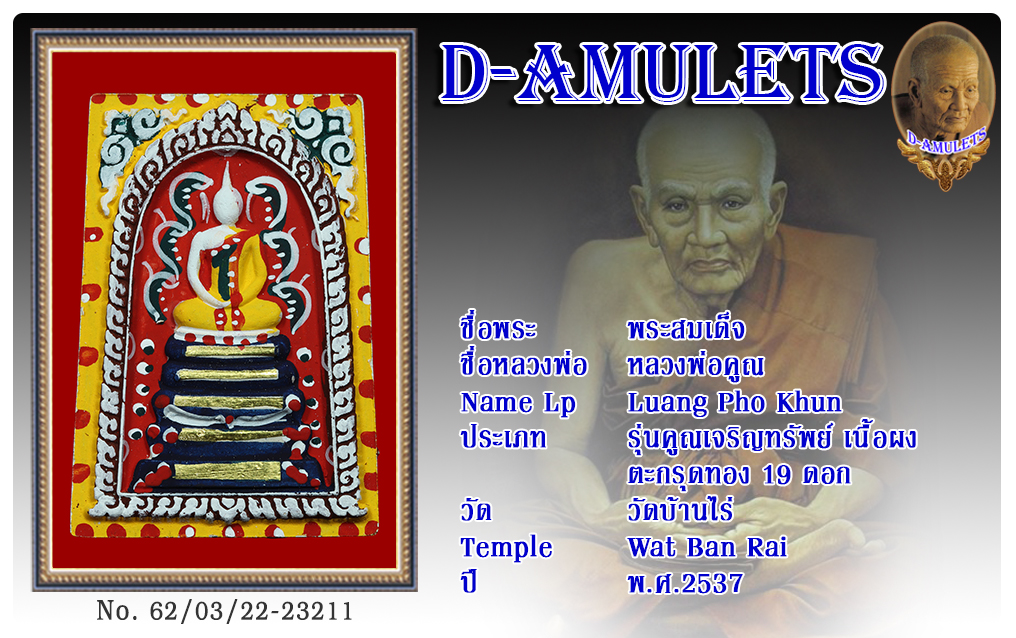 พระสมเด็จ หลวงพ่อคุณ วัดบ้านไร่ พ.ศ.2537 2562 22 มี.ค. 2019 232 share tweet share ชื่อพระ : พระสมเด็จ ชื่อหลวงพ่อ : หลวงพ่อคุณ ประเภท : รุ่นคูณเจริญทรัพย์ เนื้อผง ตะกรุดทอง 19 ดอก วัด-ปี : วัดบ้านไร่ พ.ศ.2537 รหัส : No.62/03/22/23211 ชื่อเจ้าของพระ THAI JIN AMT