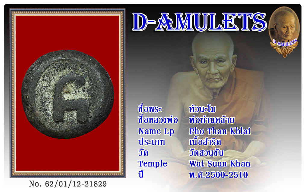 หัวนะโม พ่อท่านคล้าย วัดสวนขัน พ.ศ.2500-2510 2562 12 ม.ค. 2019 375 share tweet share ชื่อพระ : หัวนะโม ชื่อหลวงพ่อ : พ่อท่านคล้าย ประเภท : เนื้อสำริด วัด-ปี : วัดสวนขัน พ.ศ.2500-2510 รหัส : No.62/01/12/21829 เจ้าของพระ : สมบูรณ์