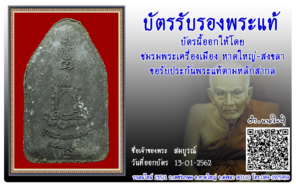 พระขุนแผนพรายกุมาร วัดควนนาแค พ.ศ.2550 2562 13 ม.ค. 2019 358 share tweet share ชื่อพระ : พระขุนแผนพรายกุมาร ประเภท : รุ่น 2 วัด-ปี : วัดควนนาแค พ.ศ.2550 รหัส : No.62/01/13/21890 เจ้าของพระ : สมบูรณ์