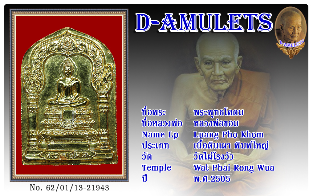 พระพุทธโคดม หลวงพ่อขอม วัดไผ่โรงวัว พ.ศ.2505 2562 13 ม.ค. 2019 348 share tweet share ชื่อพระ : พระพุทธโคดม ชื่อหลวงพ่อ : หลวงพ่อขอม ประเภท : เนื้อดินเผา พิมพ์ใหญ่ วัด-ปี : วัดไผ่โรงวัว พ.ศ.2505 รหัส : No.62/01/13/21943 เจ้าของพระ : Mr.Cho