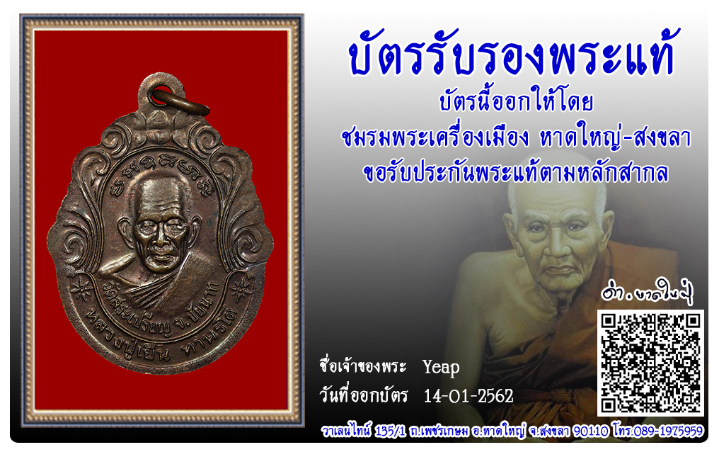 เหรียญหลวงพ่อทวีป วัดวิเวกนาศรมฯ จ.สงขลา พ.ศ.2525 2562 14 ม.ค. 2019 518 share tweet share ชื่อพระ : เหรียญหลวงพ่อทวีป วัด-ปี : วัดวิเวกนาศรมฯ จ.สงขลา พ.ศ.2525 รหัส : No.62/01/14/21961 เจ้าของพระ : Yeap
