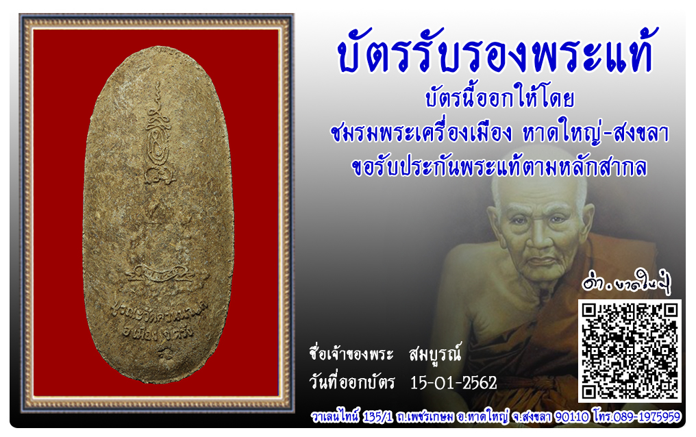 พระขุนแผนจูงกุมาร วัดควนนาแค พ.ศ.2550 2562 15 ม.ค. 2019 341 share tweet share ชื่อพระ : พระขุนแผนจูงกุมาร ประเภท : รุ่น 2 วัด-ปี : วัดควนนาแค พ.ศ.2550 รหัส : No.62/01/15/21979 เจ้าของพระ : สมบูรณ์