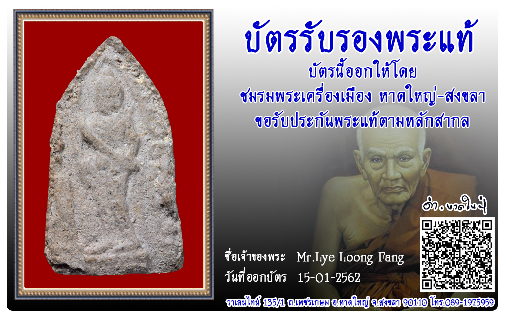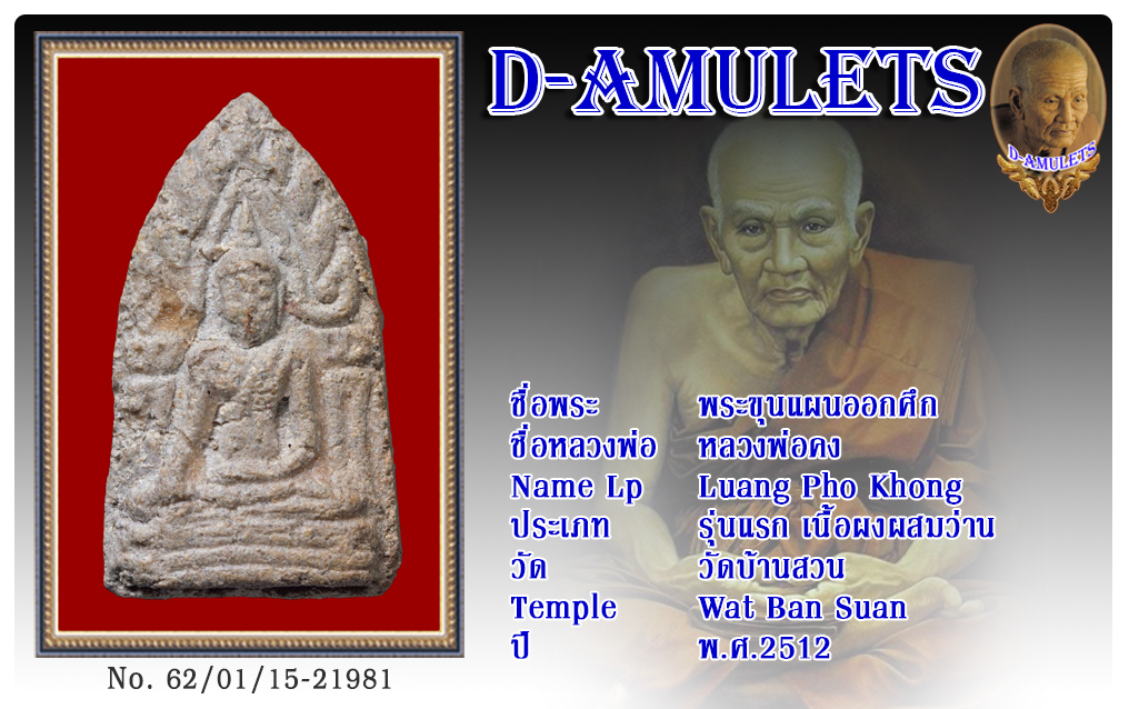 พระขุนแผนออกศึก หลวงพ่อคง วัดบ้านสวน พ.ศ.2512 2562 15 ม.ค. 2019 430 share tweet share ชื่อพระ : พระขุนแผนออกศึก ชื่อหลวงพ่อ : หลวงพ่อคง ประเภท : รุ่นแรก เนื้อผงผสมว่าน วัด-ปี : วัดบ้านสวน พ.ศ.2512 รหัส : No.62/01/15/21981 เจ้าของพระ : Mr.Lye Loong Fang