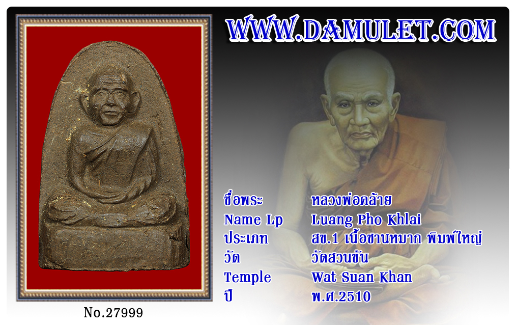 หลวงพ่อคล้าย วัดสวนขัน พ.ศ.2510 2563 02 ม.ค. 2020 468 share tweet share ชื่อพระ : หลวงพ่อคล้าย ประเภท : สข.1 เนื้อชานหมาก พิมพ์ใหญ่ วัด-ปี : วัดสวนขัน พ.ศ.2510 รหัส : No.27999 วันที่ออกบัตร : 02-01-2563 เจ้าของพระ : TT Heng Amulets