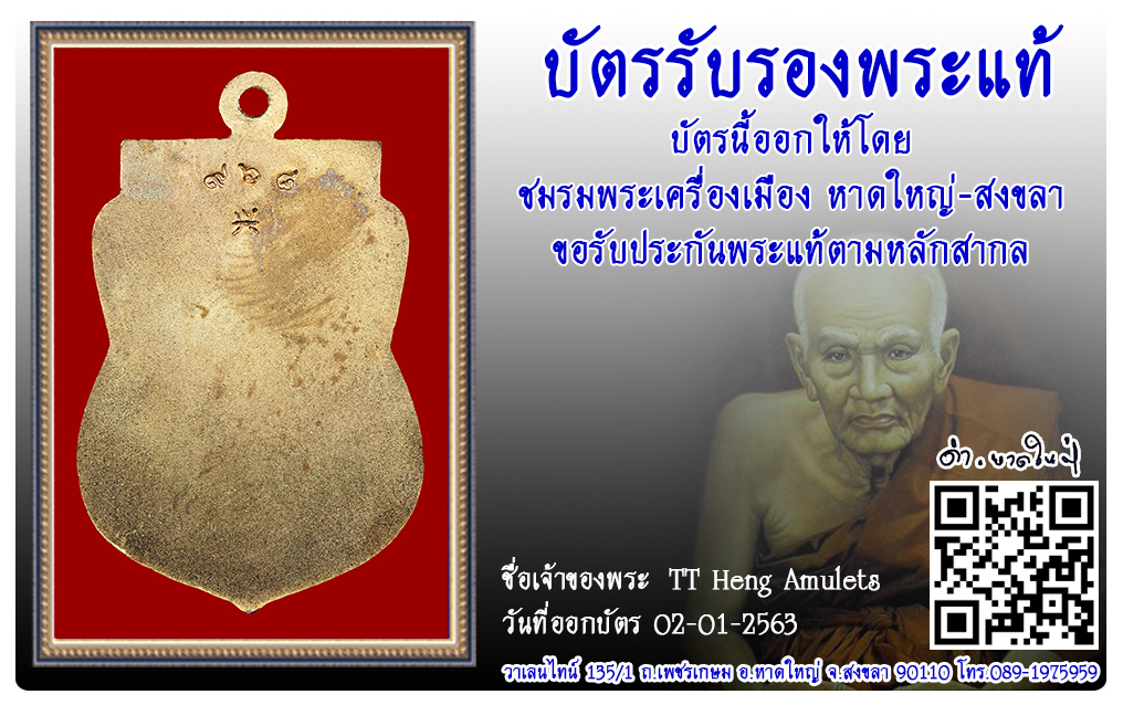 เหรียญหลวงปู่ทวด วัดคอหงส์ พ.ศ.2551 2563 02 ม.ค. 2020 502 share tweet share ชื่อพระ : เหรียญหลวงปู่ทวด ประเภท : รุ่นเลื่อนสมณศักดิ์ เนื้อทองแดง No.968 วัด-ปี : วัดคอหงส์ พ.ศ.2551 รหัส : No.28011 วันที่ออกบัตร : 02-01-2563 เจ้าของพระ : TT Heng Amulets