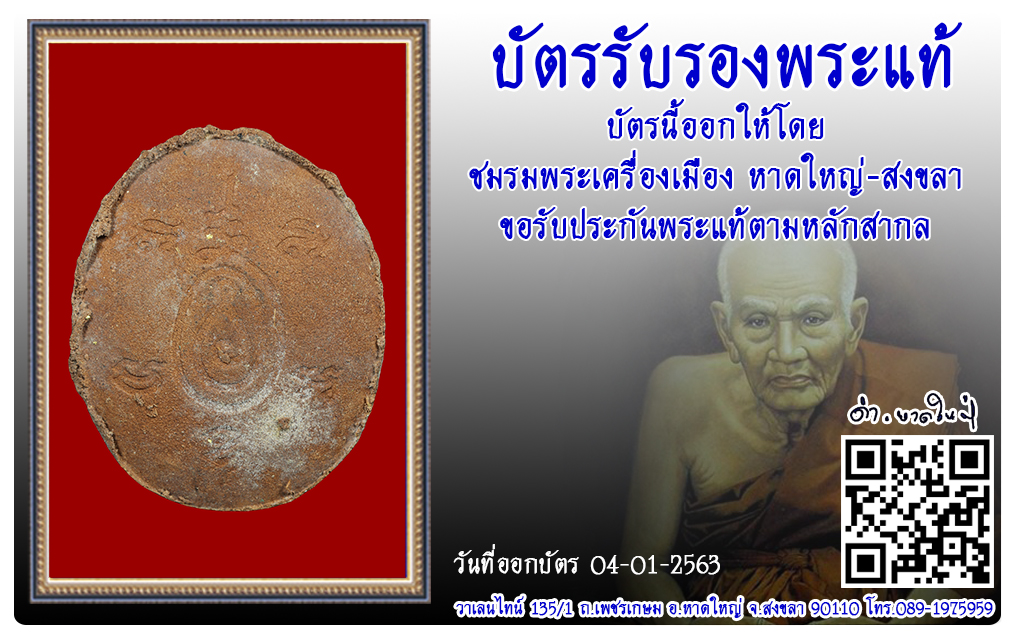 พระผงเศรษฐีเงินล้าน หลวงปู่ไข่ วัดลำนาว พ.ศ.2548 2563 04 ม.ค. 2020 393 share tweet share ชื่อพระ : พระผงเศรษฐีเงินล้าน ชื่อหลวงพ่อ : หลวงปู่ไข่ ประเภท : พิมพ์ใหญ เนื้อขาวปัดทอง วัด-ปี : วัดลำนาว พ.ศ.2548 รหัส : No.28093 วันที่ออกบัตร : 04-01-2563