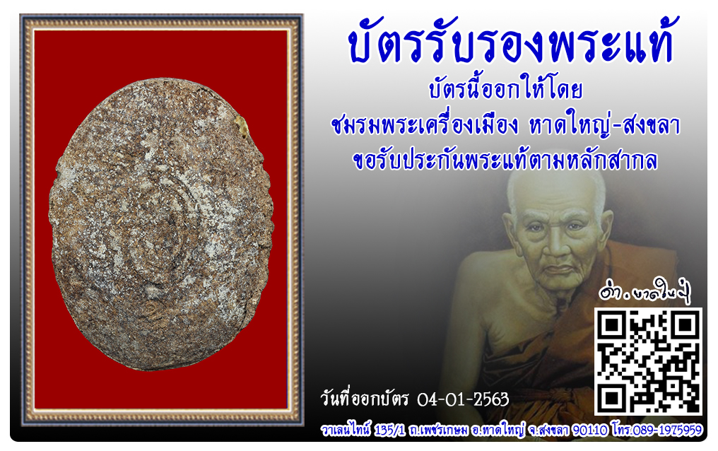 พระผงเศรษฐีเงินล้าน หลวงปู่ไข่ วัดลำนาว พ.ศ.2548 2563 04 ม.ค. 2020 389 share tweet share ชื่อพระ : พระผงเศรษฐีเงินล้าน ชื่อหลวงพ่อ : หลวงปู่ไข่ ประเภท : พิมพ์ใหญ เนื้อว่าน วัด-ปี : วัดลำนาว พ.ศ.2548 รหัส : No.28096 วันที่ออกบัตร : 04-01-2563