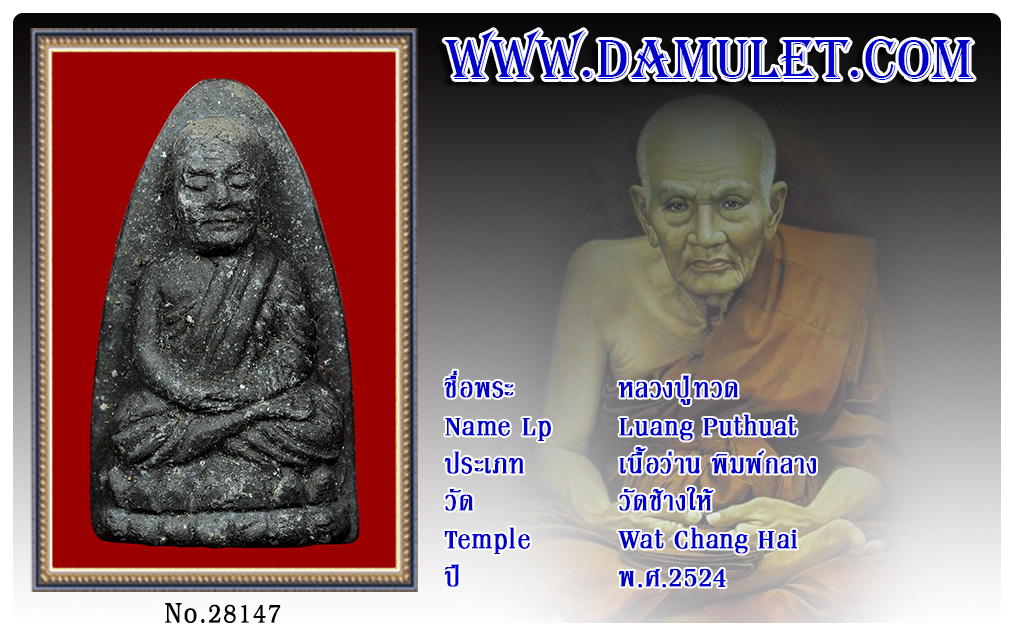 หลวงปู่ทวด วัดช้างให้ พ.ศ.2524 2563 06 ม.ค. 2020 387 share tweet share ชื่อพระ : หลวงปู่ทวด ประเภท : เนื้อว่าน พืมพ์กลาง วัด-ปี : วัดช้างให้ พ.ศ.2524 รหัส : No.28147 วันที่ออกบัตร : 06-01-2563