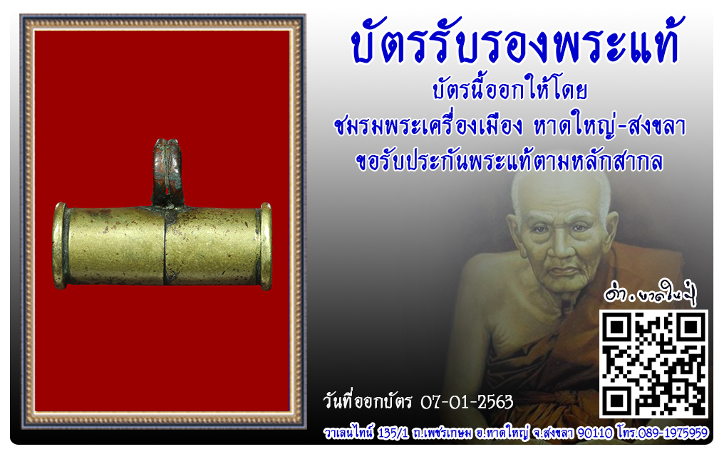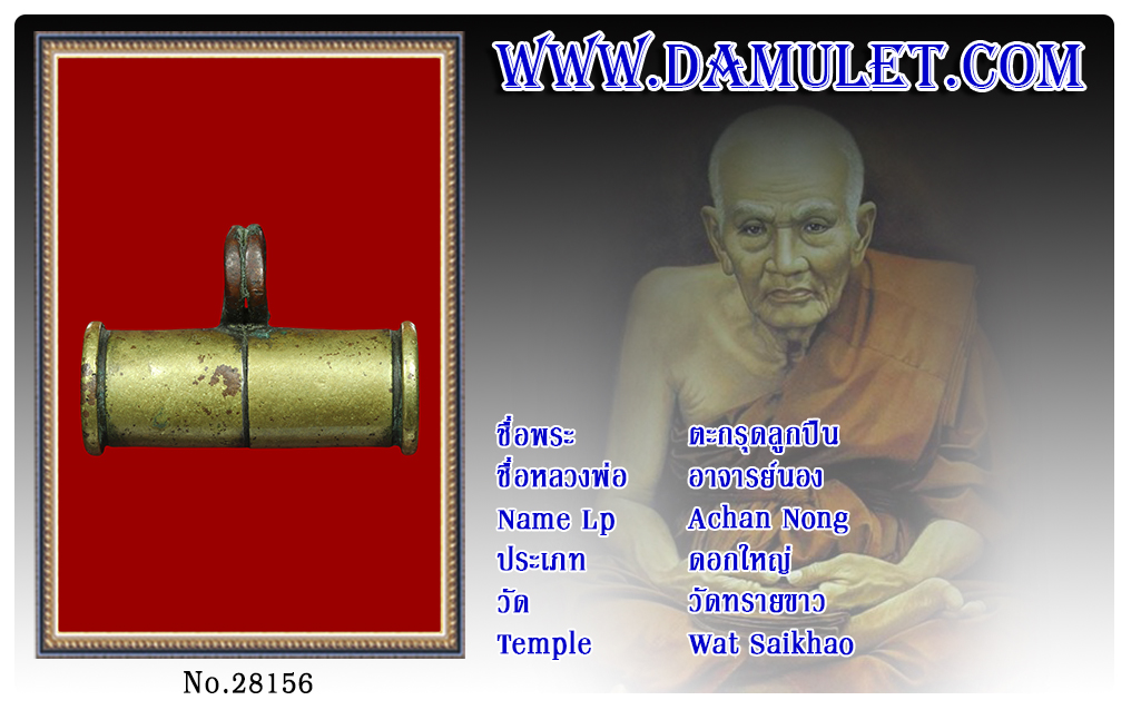 ตะกรุดลูกปืน อาจารย์นอง วัดทรายขาว 2563 07 ม.ค. 2020 349 share tweet share ชื่อพระ : ตะกรุดลูกปืน ชื่อหลวงพ่อ : อาจารย์นอง ประเภท : ดอกใหญ่ วัด-ปี : วัดทรายขาว รหัส : No.28156 วันที่ออกบัตร : 07-01-2563
