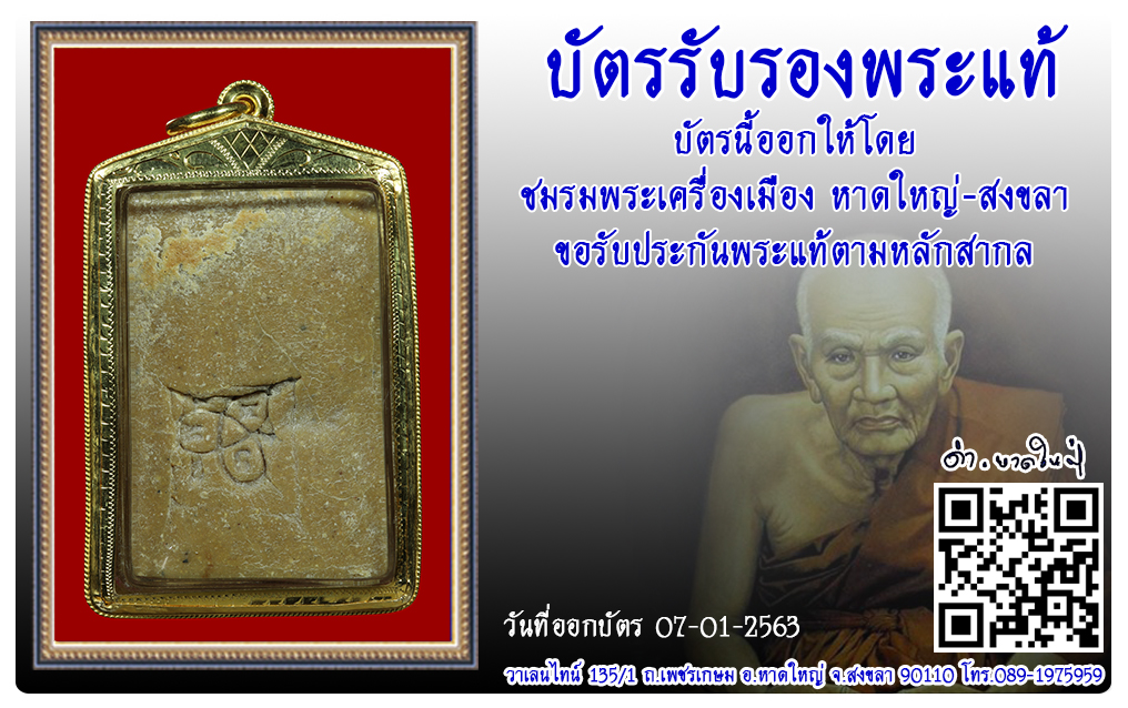 พระสมเด็จ หลวงปู่ธูป วัดแคนางเลิ้ง 2563 07 ม.ค. 2020 1054 share tweet share ชื่อพระ : พระสมเด็จ ชื่อหลวงพ่อ : หลวงปู่ธูป ประเภท : หลังยันต์ใบพัด เนื้อผงน้ำมัน วัด-ปี : วัดแคนางเลิ้ง รหัส : No.28157 วันที่ออกบัตร : 07-01-2563