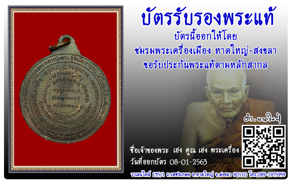 เหรียญหลวงปู่แหวน วัดดอยแม่ปั๋ง 2563 08 ม.ค. 2020 966 share tweet share ชื่อพระ : เหรียญหลวงปู่แหวน ประเภท : รุ่นฉลองอายุครบ 89 ปี เนื้อนวะ วัด-ปี : วัดดอยแม่ปั๋ง รหัส : No.28163 วันที่ออกบัตร : 08-01-2563 เจ้าของพระ : เฮง คูณ เฮง พระเครื่อง