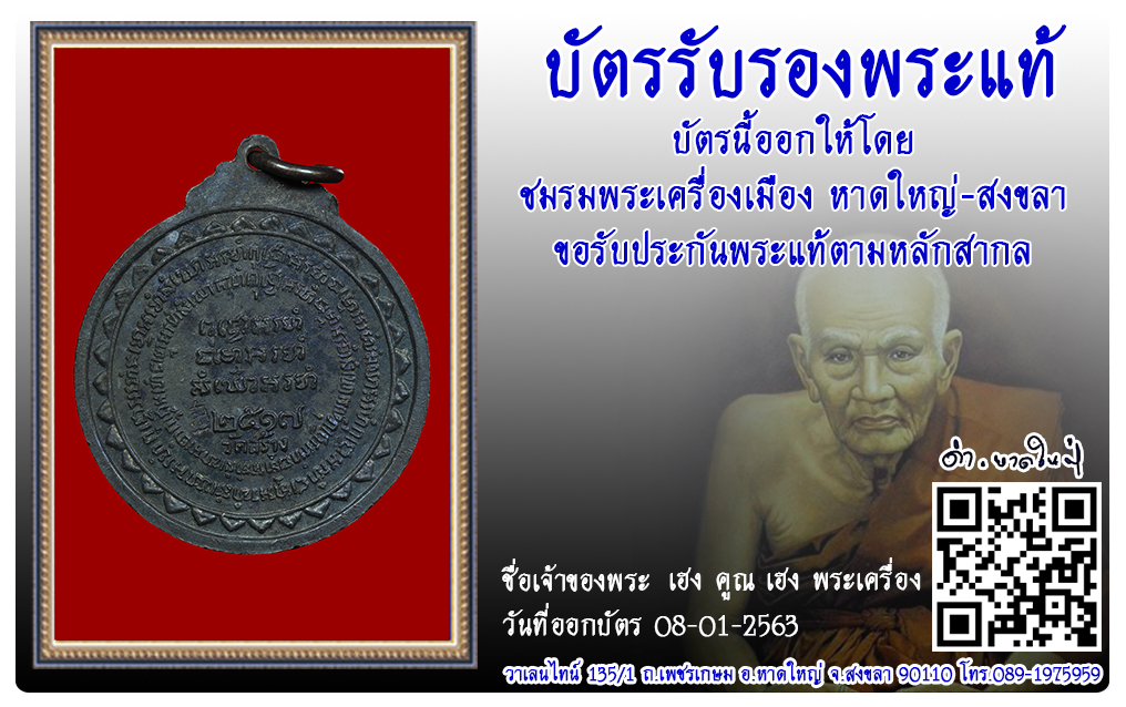 เหรียญหลวงปู่แหวน วัดดอยแม่ปั๋ง พ.ศ.2517 2563 08 ม.ค. 2020 430 share tweet share ชื่อพระ : เหรียญหลวงปู่แหวน ประเภท : รุ่นเขาค้อ เนื้อทองแดง วัด-ปี : วัดดอยแม่ปั๋ง พ.ศ.2517 รหัส : No.28164 วันที่ออกบัตร : 08-01-2563 เจ้าของพระ : เฮง คูณ เฮง พระเครื่อง
