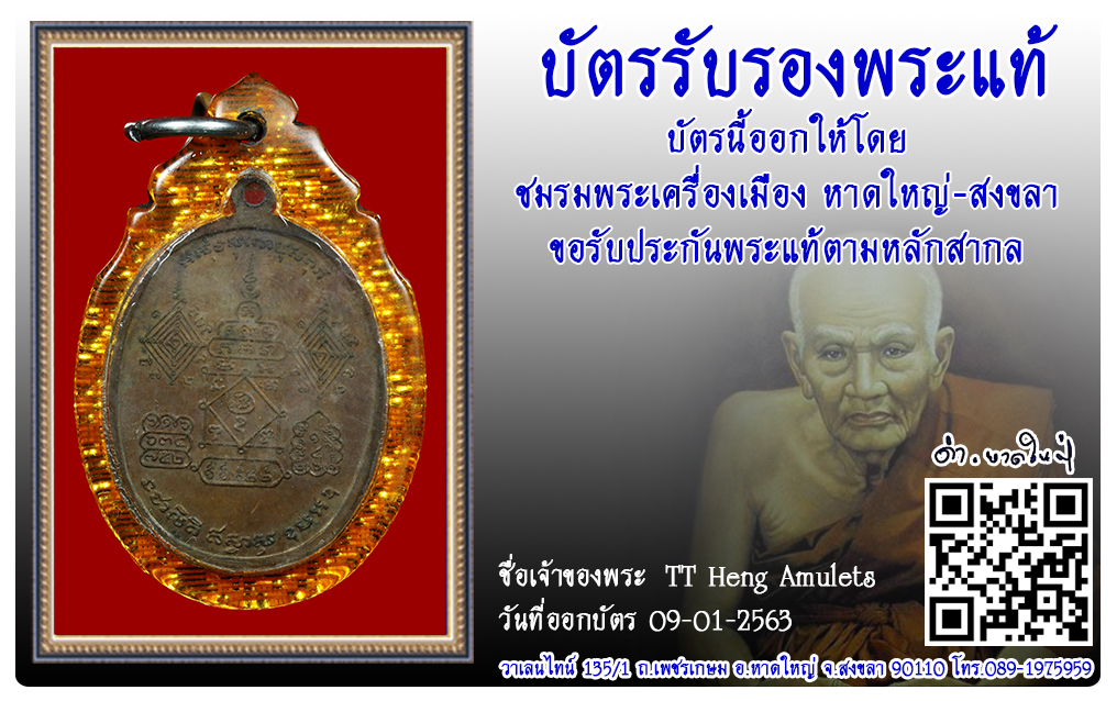 เหรียญหลวงพ่อคลิ้ง วัดถลุงทอง พ.ศ.2520 2563 09 ม.ค. 2020 446 share tweet share ชื่อพระ : เหรียญหลวงพ่อคลิ้ง ประเภท : รุ่นโกหว่า เนื้อทองแดง วัด-ปี : วัดถลุงทอง พ.ศ.2520 รหัส : No.28169 วันที่ออกบัตร : 09-01-2563 เจ้าของพระ : TT Heng Amulets