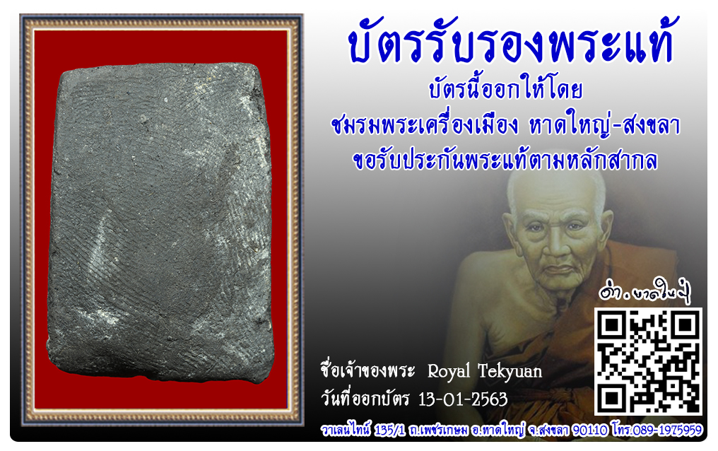 หลวงปู่ทวด วัดเมือง พ.ศ.2535 2563 13 ม.ค. 2020 379 share tweet share ชื่อพระ : หลวงปู่ทวด ประเภท : เนื้อว่าน พิมพ์กรรมการ วัด-ปี : วัดเมือง พ.ศ.2535 รหัส : No.28182 วันที่ออกบัตร : 13-01-2563 เจ้าของพระ : Royal Tekyuan