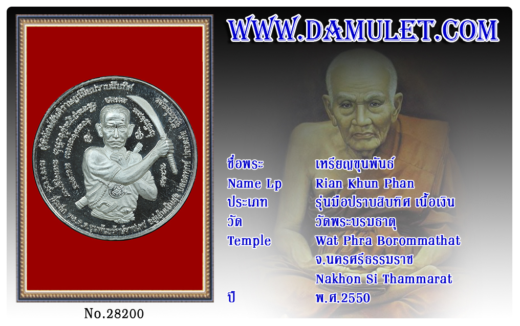 เหรียญขุนพันธ์ วัดพระบรมธาตุ จ.นครศรีธรรมราช พ.ศ.2550 2563 15 ม.ค. 2020 328 share tweet share ชื่อพระ : เหรียญขุนพันธ์ ประเภท : รุ่นมือปราบสิบทิศ เนื้อเงิน วัด-ปี : วัดพระบรมธาตุ จ.นครศรีธรรมราช พ.ศ.2550 รหัส : No.28200 วันที่ออกบัตร : 15-01-2563 เจ้าของพระ : Ming 019