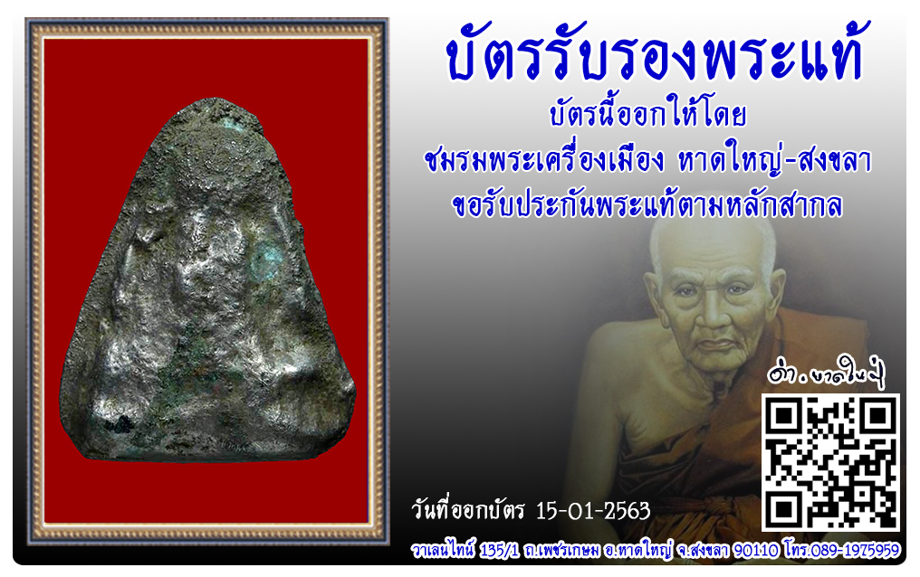 พระปิดตา หลวงพ่อตุด วัดคูหาสวรรค์ พ.ศ.2485 2563 15 ม.ค. 2020 829 share tweet share ชื่อพระ : พระปิดตา ชื่อหลวงพ่อ : หลวงพ่อตุด ประเภท : เนื้อสำริด วัด-ปี : วัดคูหาสวรรค์ พ.ศ.2485 รหัส : No.28201 วันที่ออกบัตร : 15-01-2563