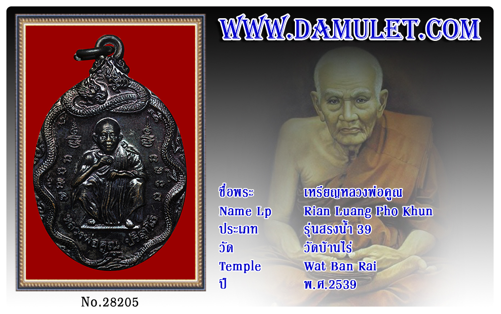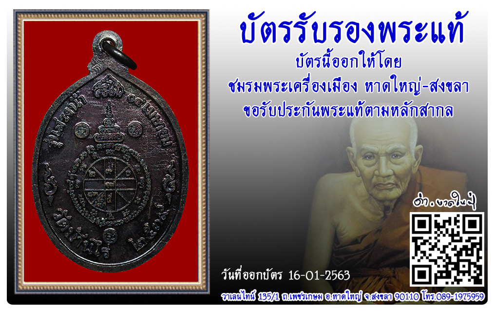 เหรียญหลวงพ่อคูณ วัดบ้านไร่ พ.ศ.2539 2563 16 ม.ค. 2020 467 share tweet share ชื่อพระ : เหรียญหลวงพ่อคูณ ประเภท : รุ่นสรงน้ำ 39 วัด-ปี : วัดบ้านไร่ พ.ศ.2539 รหัส : No.28205 วันที่ออกบัตร : 16-01-2563