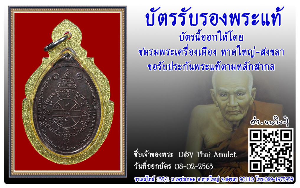 เหรียญหลวงพ่อคูณ วัดตลาดไทรเก่า พ.ศ.2522 2563 08 ก.พ. 2020 357 share tweet share ชื่อพระ : เหรียญหลวงพ่อคูณ ประเภท : รุ่นพิเศษ เนื้อทองแดง วัด-ปี : วัดตลาดไทรเก่า พ.ศ.2522 รหัส : No.28393 วันที่ออกบัตร : 08-02-2563 เจ้าของพระ : D&V Thai Amulet