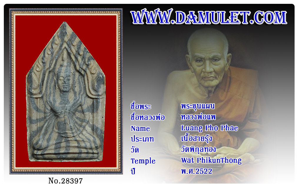 พระขุนแผน หลวงพ่อแพ วัดพิกุลทอง พ.ศ.2522 2563 08 ก.พ. 2020 363 share tweet share ชื่อพระ : พระขุนแผน ชื่อหลวงพ่อ : หลวงพ่อแพ ประเภท : เนื้อสายรุ้ง วัด-ปี : วัดพิกุลทอง พ.ศ.2522 รหัส : No.28397 วันที่ออกบัตร : 08-02-2563 เจ้าของพระ : D&V Thai Amulet