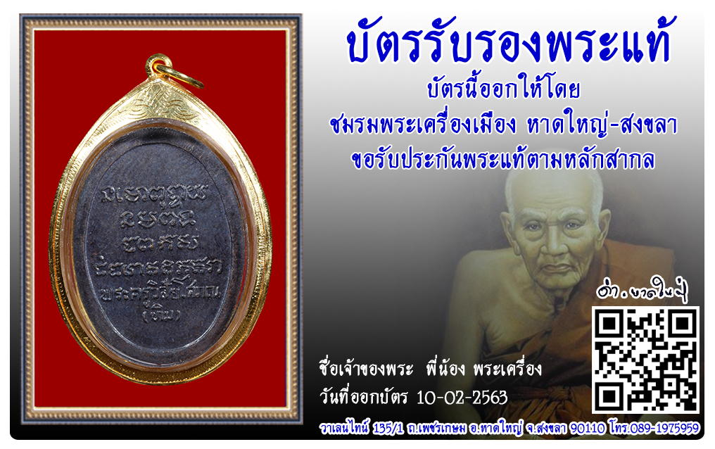 เหรียญอาจารย์ทิม วัดช้างให้ 2508 2563 09 ก.พ. 2020 330 share tweet share ชื่อพระ : เหรียญอาจารย์ทิม ประเภท : พิมพ์หันข้าง เนื้อทองแดง วัด-ปี : วัดช้างให้ 2508 รหัส : No.28424 วันที่ออกบัตร : 10-02-2563 ชื่อเจ้าของพระ : พี่น้อง พระเครื่อง