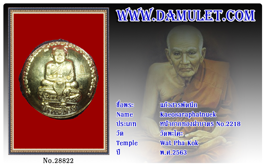 แก้วสารพัดนึก วัดพะโคะ พ.ศ.2563 2563 24 ก.พ. 2020 483 share tweet share ชื่อพระ : แก้วสารพัดนึก ประเภท หน้ากากทองแดง No.2218 วัด-ปี : วัดพะโคะ พ.ศ.2563 รหัส : No.28822 วันที่ออกบัตร : 26-02-2563
