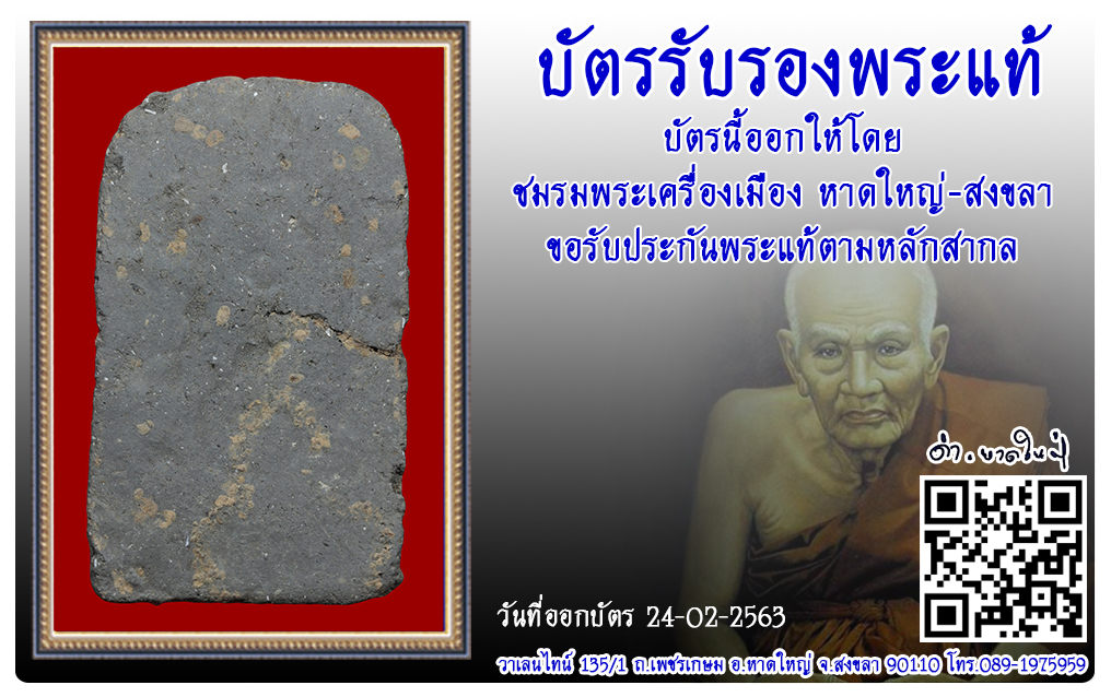 พระผงพรายสมุทร หลวงพ่อเจิม วัดหอยราก พ.ศ.2499 2563 24 ก.พ. 2020 304 share tweet share ชื่อพระ : พระผงพรายสมุทร ชื่อหลวงพ่อ : หลวงพ่อเจิม ประเภท : พิมพ์ปรกโพธิ์เล็ก วัด-ปี : วัดหอยราก พ.ศ.2499 รหัส : No.28742 วันที่ออกบัตร : 24-02-2563