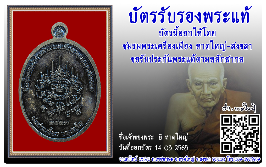 เหรียญหลวงพ่อเอื้อม หลวงพ่อเอื้อม วัดบางเนียน พ.ศ.2557 2563 14 มี.ค. 2020 312 share tweet share ชื่อพระ : เหรียญหลวงพ่อเอื้อม ชื่อหลวงพ่อ : หลวงพ่อเอื้อม ประเภท : รุ่นเจริญพร เนื้อทองแดง วัด-ปี : วัดบางเนียน พ.ศ.2557 รหัส : No.29366 วันที่ออกบัตร : 14-03-2563 เจ้าของพระ : ยิ หาดใหญ่