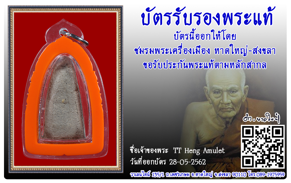 หลวงปู่ทวด วัดถ้ำยะลา พ.ศ.2505 2563 28 พ.ค. 2020 294 share tweet share ชื่อพระ : หลวงปู่ทวดประเภท : เนื้อว่าน ฝังเม็ดพระธาตุวัด-ปี : วัดถ้ำยะลา พ.ศ.2505รหัส : No.30090วันที่ออกบัตร : 28-05-2563เจ้าของพระ : TT Heng Amulet