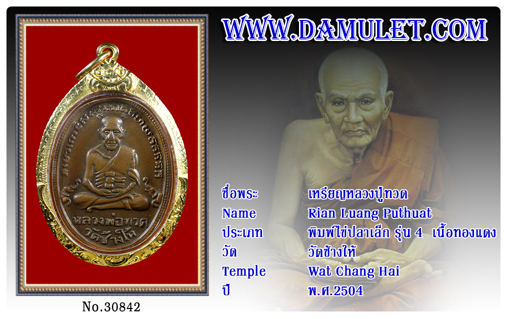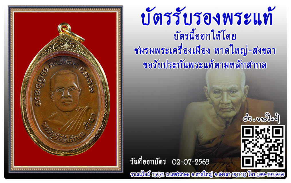 เหรียญหลวงปู่ทวด วัดช้างให้ พ.ศ.2504 2563 02 ก.ค. 2020 371 share tweet share ชื่อพระ : เหรียญหลวงปู่ทวดประเภท : พิมพ์ไข่ปลาเล็ก รุ่น 4 เนื้อทองแดงวัด-ปี : วัดช้างให้ พ.ศ.2504รหัส : No.30842วันที่ออกบัตร : 02-07-2563