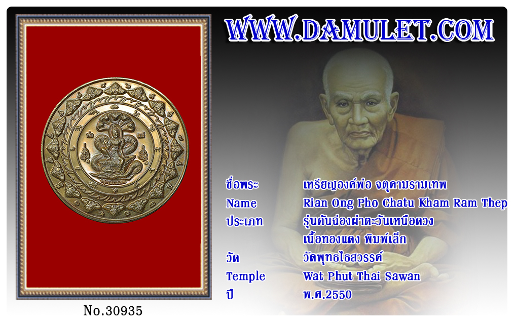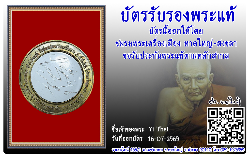 เหรียญองค์พ่อจตุคามรามเทพ วัดพุทธไธสวรรค์ พ.ศ.2550 2563 16 ก.ค. 2020 387 share tweet share ชื่อพระ : เหรียญองค์พ่อจตุคามรามเทพประเภท : รุ่นคันฉ่องผ่าตะวันเหนือดวง เนื้อทองแดง พิมพ์เล็กวัด-ปี : วัดพุทธไธสวรรค์ พ.ศ.2550รหัส : No.30935วันที่ออกบัตร : 16-07-2563เจ้าของพระ : Yi Thai